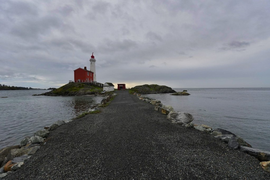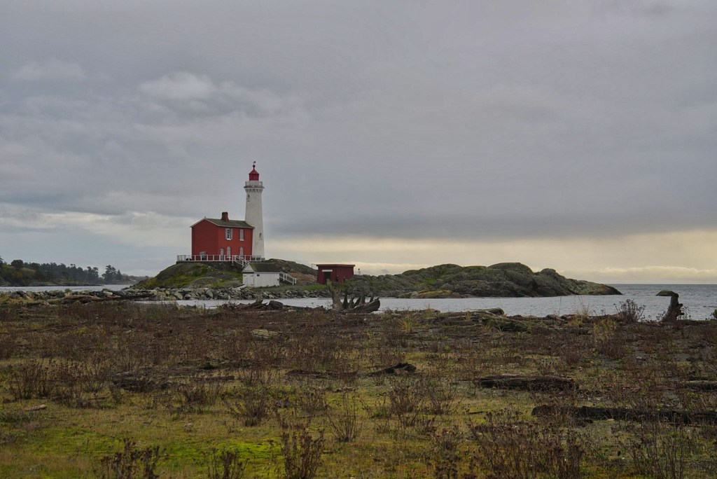 It was about a 30 minute drive to Fort Rodd Hill and Fisgard Lighthouse. It is a coastal battery built to defend the nearby Naval yard from would-be attackers ranging from Russia to the United States. It has long since been decommissioned, and is now part of Parks Canada and has free entry (not unlike U.S. parks when a government shutdown prevents them from collecting entry fees). It wasn’t yet raining when we arrived, but we sensed it wouldn’t be long. The sky was overcast and the wind was chilling. We walked a bit briskly up to the lighthouse and began our return trip when it started sprinkling.