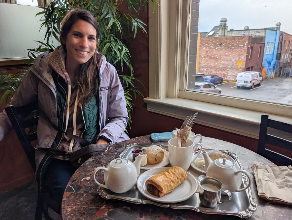 I also had a sausage roll. There are numerous tea services throughout Victoria, but none are quite the same as what you would find in England. The sausage roll I had was a bit heavy in comparison to something one might find at Gregg’s in the UK. The scones were more cake-y as well. That being said, the atmosphere at Murchie’s was relaxing and we watched float planes flying overhead as if they were hovering on account of the strong wind.